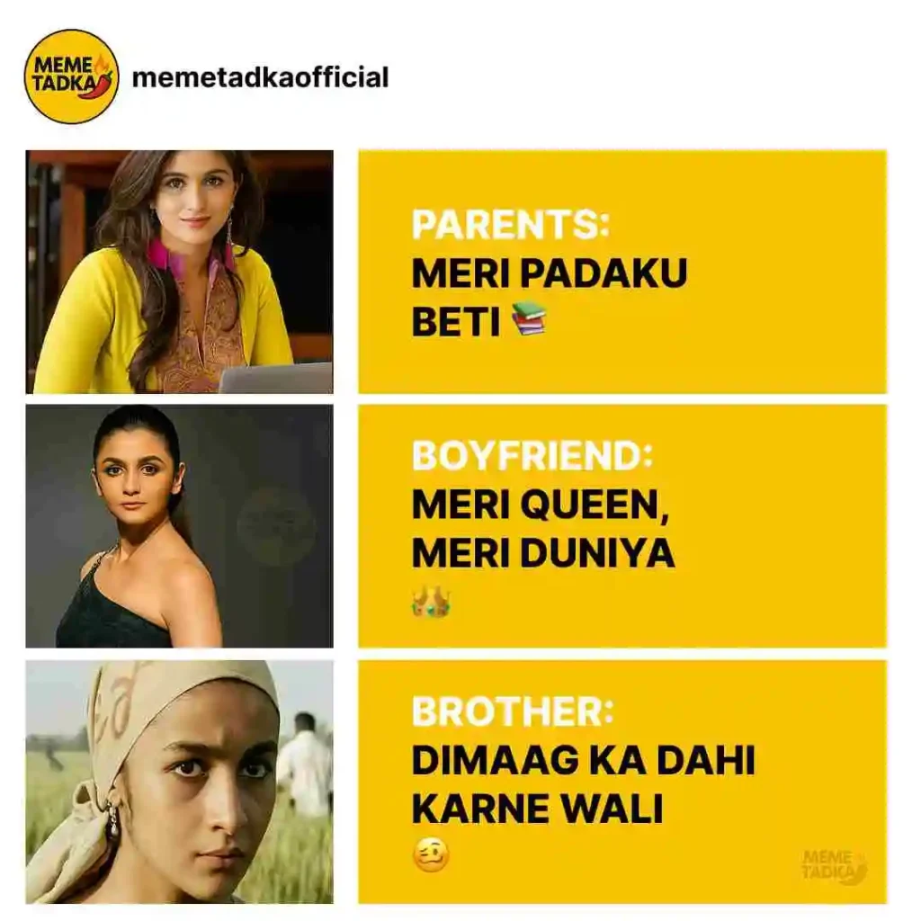Ek hi ladki, 3 alag versions 😅” Leave a Comment / By Meme Tadka / September 20, 2025 #MemeTadka #RelatableMemes #IndianParents #BoyfriendVibes #BrotherProblems #PadakuBeti #MeriQueen #DimaagKaDahi #DesiMemes #DailyMemes #FunnyReels #ReelIndia #TrendingReels #ExploreMore #ViralMemes #JustForFun #MemeTadkaOfficial #ScrollPeLagaoTadka